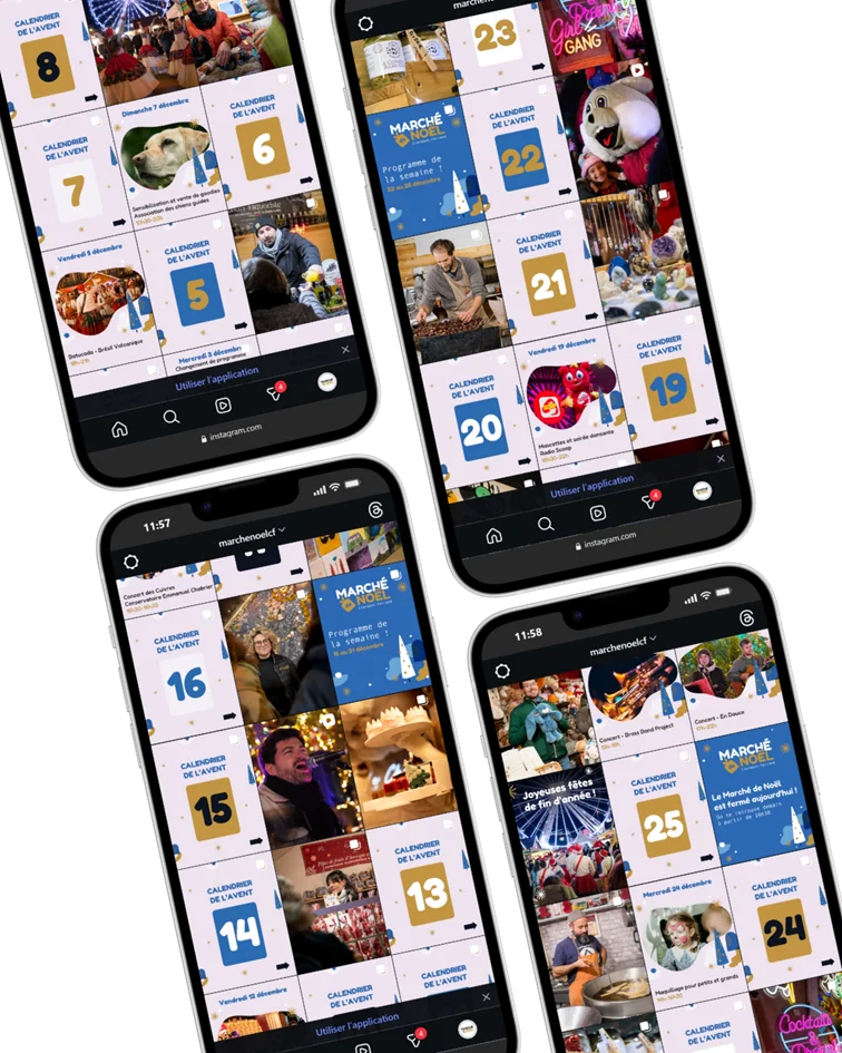 De nombreuses animations sont organisées durant tout l’événement afin d’inciter les visiteurs à (re)venir. À l’occasion de l’édition 2025 du Marché de Noël, nous avons imaginé un dispositif numérique pour soutenir cet élan : le Calendrier de l’Avent.
